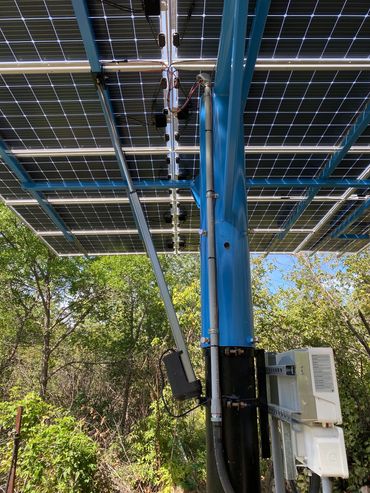 Using bi-facial panels, this client will receive up to 30% more production utilizing ambient light capturing from the back of the solar panel. As you can see in the picture, the panels can capture light on the back of each cell. These arrays will be tilted into position after the install is complete