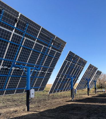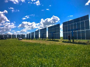 Specially designed to withstand the strong winds of Saskatchewan, the S.P.M. (single pole mount) is easily tilt-able for all seasons to maximize power output. The SPM is built 100% out of structural grade steel and with long lasting multi layer epoxy coatings. We guarantee our products to withstand the lifetime of your panels. All welded construction with Saskatchewan CWB journeyman welders. We stand behind our quality of workmanship. Bi-facial panels increase the efficiency per sq/M to allow for maximum output with the smallest footprint.