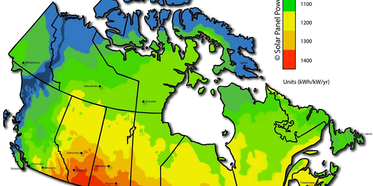 The south can reach up to 1400 kWh /kW/yr. This is the highest in Canada!